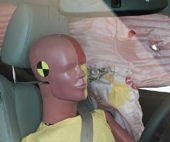 Dummy movement was well controlled. During rebound, the dummy's head hit the roof rail and sunvisor.
