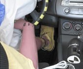 Measures taken from the head, neck, and chest indicate low risk of injuries to these body regions in a crash of this severity. Forces on the right tibia indicate that lower leg injuries would be possible.